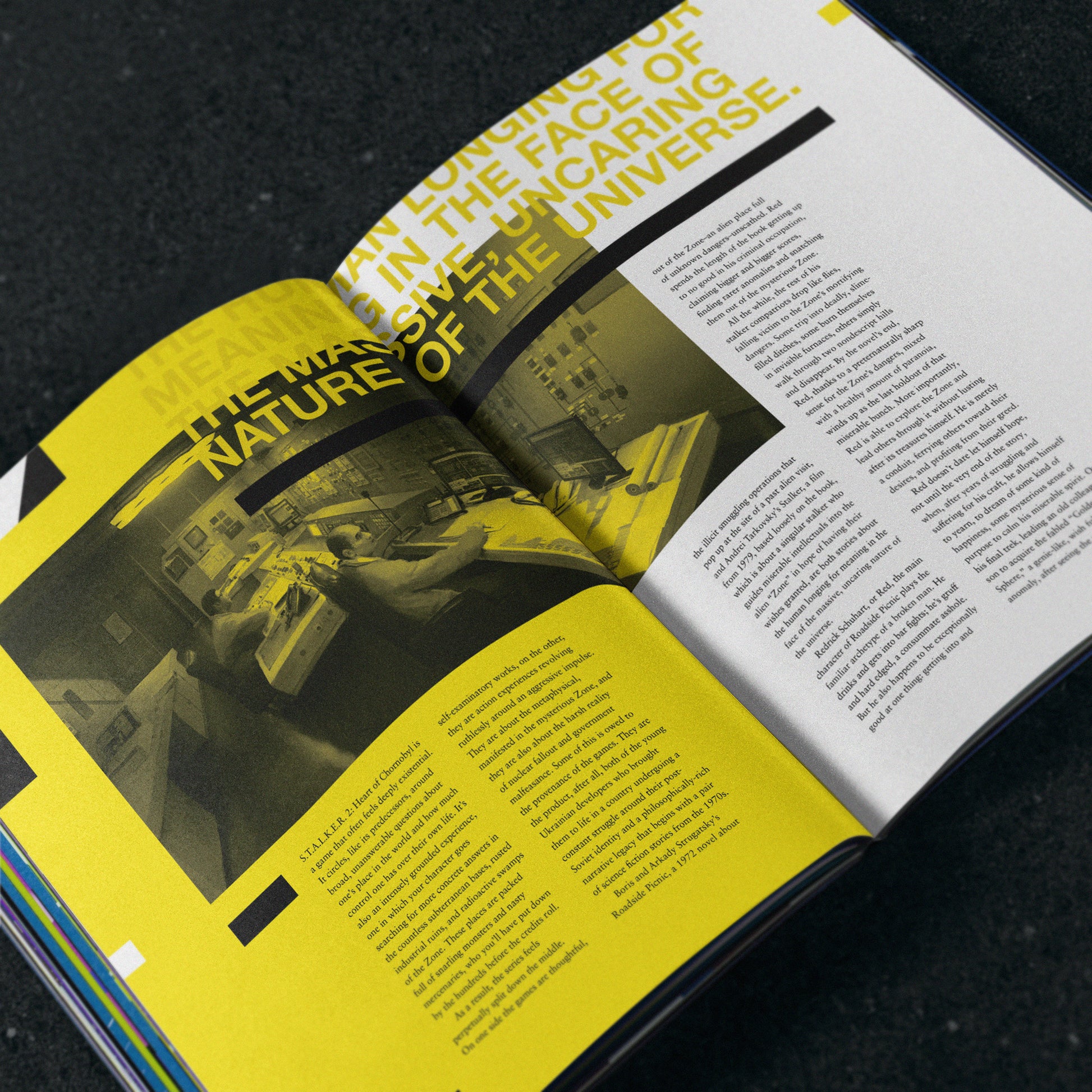 The STALKER series transports players to the irradiated wastelands of Chernobyl, while drawing on literary and cinematic influences that go back to the Strugatskys' novel Roadside Picnic, first published in 1972. Yussef Cole examines the series' complex lineage and its vital relevance in the present day, while charting the fault lines of the games' unusual divided soul, asking existential questions while also providing a near-endless supply of monsters to shoot.